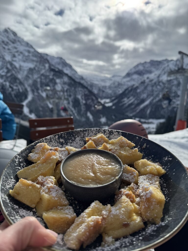 The slopes are well maintained and suitable for different levels. We spent hours riding, enjoying wide pistes and mountain views. On the mountain we stopped for Kaiserschmarrn, which is simply a must during any Austrian snowboard trip. Warm, sweet and perfect after a few hours in the snow.